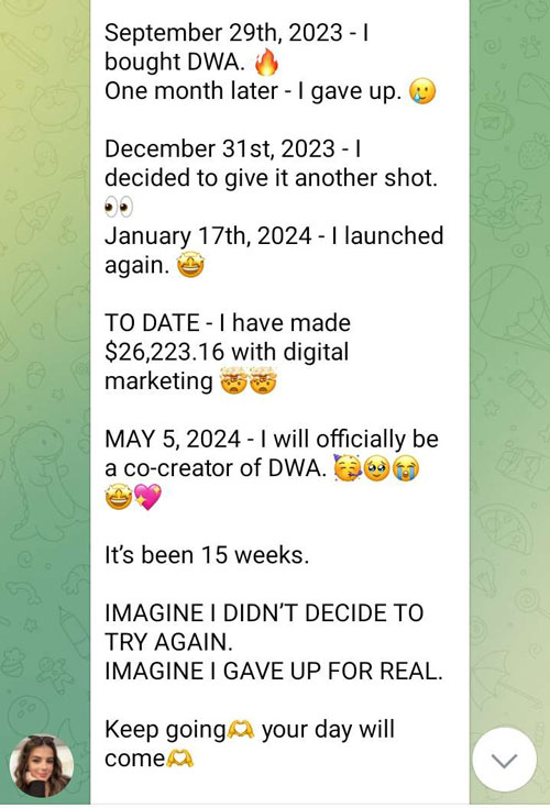 I started in Digital Marketing on June 3, 2023, and in my first two months, I made $100,000. Now I'm at around $250,000 per month.