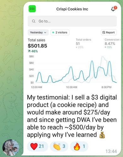You will create simple sales funnels to resell the DWA course or use the strategies to launch any new business or optimize an existing one.